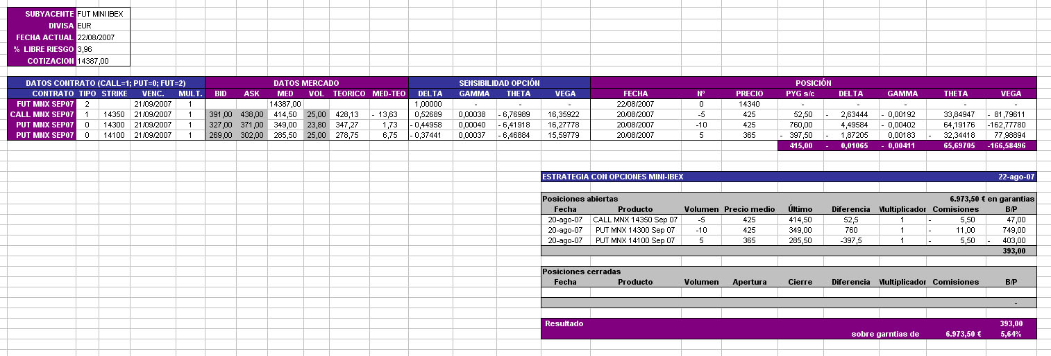 dada la situación de los mercados, he decidido compaginar mis últimos días de vacaciones con el inicio de una nueva estrategia de venta de opciones sobre el mini del ibex. Veremos que tal va.