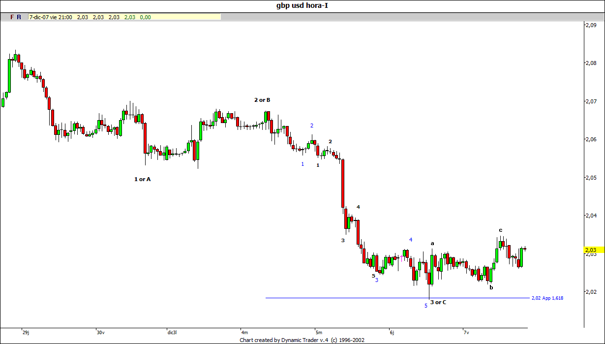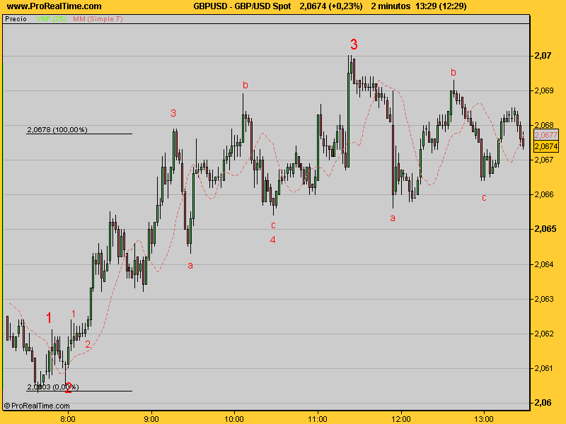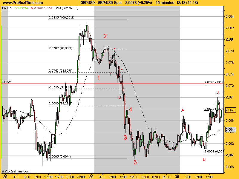 Pos el final de C era donde ponía 3. Ya me parecía a mi...pero vamos, que prefería entrar más abajo con mayor seguridad así que he dejao una orden por debajo del último descenso y vaya si me la ha cogío...ahora veremos porque pue ser que haga la C de un zigzag o que esto sea el comienzo de una tercera. Como no lo tengo claro, le iré siguiendo el paso con stops, un poco hogaditos, que hay que dejar correr las ganancias...Norabuena al que esté dentro. :D
