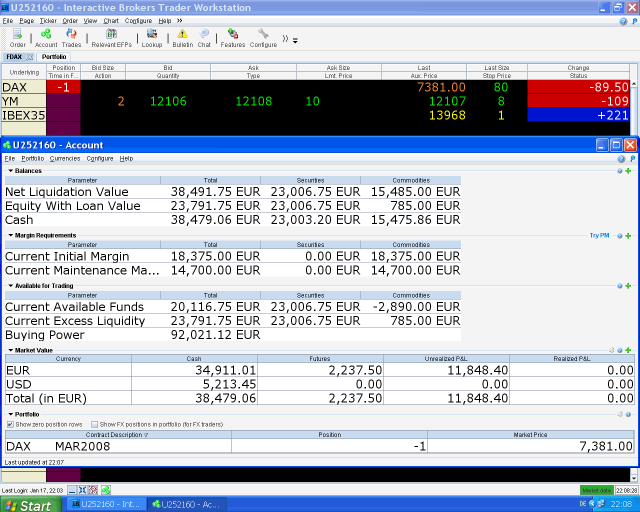 En tus extractos veo que tienes un DAX -1 vencimiento de Marzo 2008 a 6812, dentro de poco empezarás a tener beneficios de ese contrato.