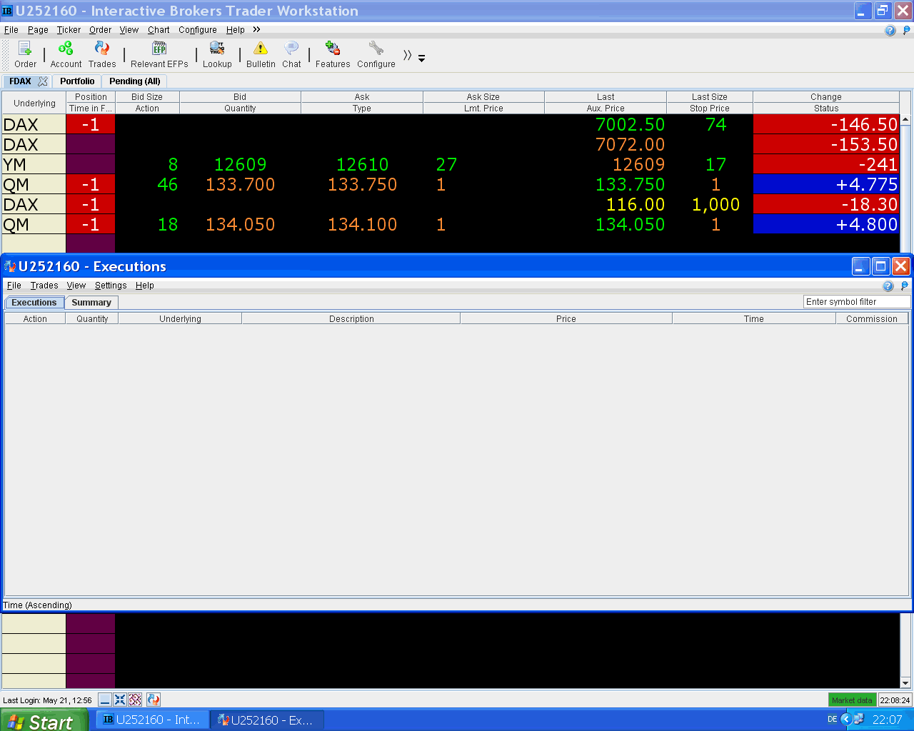 después de todo el stress aún me acosté contento ayer, gracias al amigo frankcis, el dijo que se hablaba de que el petróleo podía subir a 250 $ y yo ya empecé a imaginarme como podía transcurrir un posible Crash en el DAX, pero al final, como siempre, sale todo al revés, que se le va a hacer.