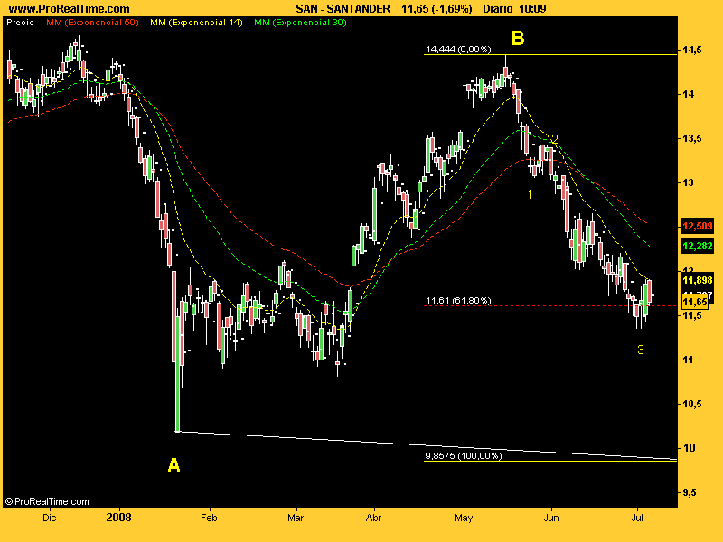 En estos momentos, la tercera =161 de la primera en el SAN con lo que paice que la tres ha tocao fondo. Cuando la tres es el 161 de la 1, la 5 se extiende, Neely dixit. Me paice que si el rebote llega a los 12 euros va que se mata :-D