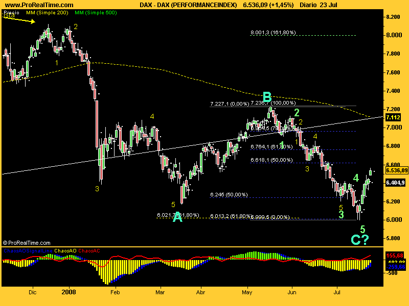 Desvaríos aparte, ahora hay poca prisa pa hacer ná, creo. Me parece que está construyendo un movimiento lateral que sería la onda 4 de la C. Yo creo que la onda quinta va a ser violenta y se va a extender visto como anda el patio. Estos son una cuadrilla de mamones, me paice que se van a dedicar este mes a echar a to quisqui que puedan y cuando el pequeño inversor esté veraneando suelo que te crió. Pero con lo que no cuentan es con que el pequeño inversor está tan jodío con el euribor subiendo que no se va a ir de vacaciones :lol: :lol: y va a pillar el suelo antes que ellos.