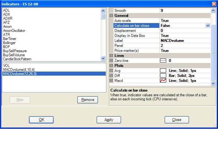 Otra. Yo, como jodi max, también uso el MACD de volumen, por lo que me he descargado el indicador, ahora viene el problema, debo compilarlo? Lo he colocado en la carpeta que me ha creado el ninja al instalarlo (Mis documentos\NinjaTrader 6.5\bin\Custom\Indicator) donde, al menos eso creo, están los otros indicadores (*.cs), pero al ir a cargarlo en el gráfico no me aparece en la lista de indicadores.