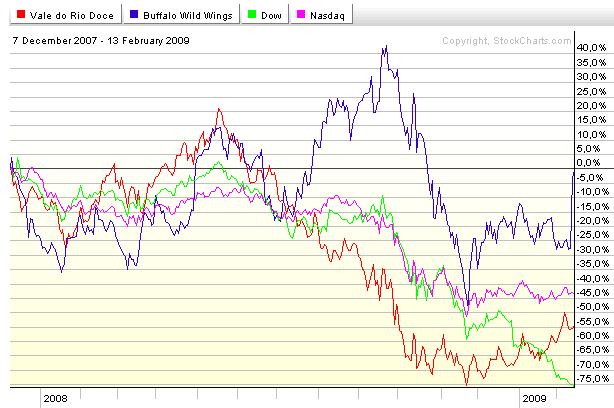 Pero no voy a eso, voy a los siguiente: el amigo Soros acaba de comprar hace unas semanas (en octubre, pero no sé el día) una empresa con un nombre muy curioso Buffalo Wild Wings (NasdaqGS: BWLD) algo así como “Alas de búfalo salvaje” que en realidad es una cadena de restaurantes que venden alitas de pollo.