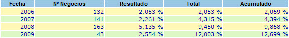 Despues de ajustar los setups al activo, para los ejercicios 2006-2009, lo aplique al 2005 y los resultados seguian siendo parecidos, aun cuando el mercado por aquel entonces cerraba 2 horas antes.