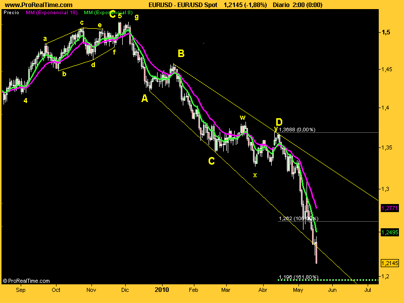 Yo creía que el euro rebotaría algo porque pensaba que esto era un contracto, pero ya veo que no :shock: Y si creía que era un contracto era porque una onda tan violenta como la caidita esa de 2008 se da normalmente en los triángulos...CONTRACTOS O BIEN (VÁLGAME DIOS :shock: ) EXPANSIVOS... y no quería contemplar eso hasta qe no fuera evidente.