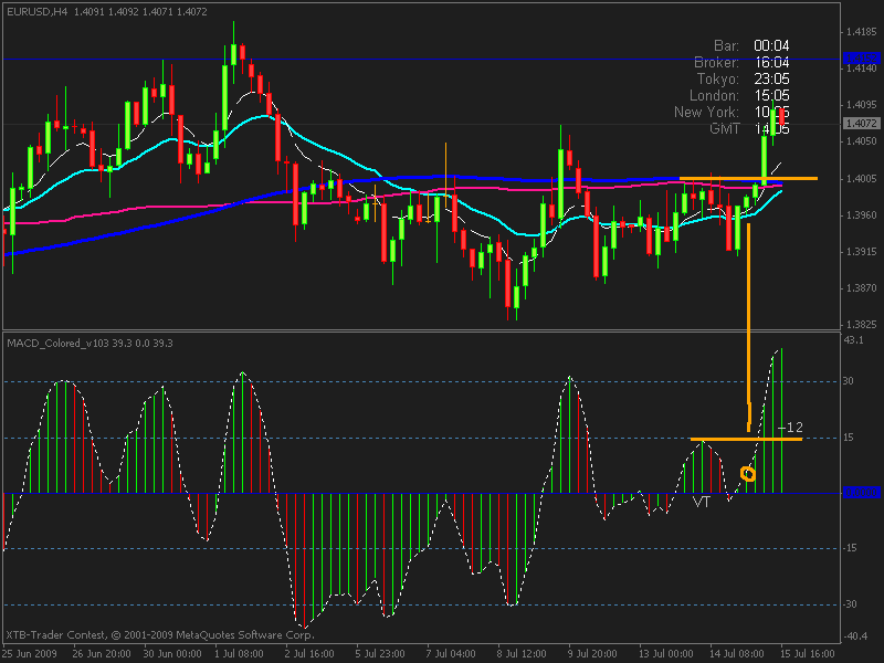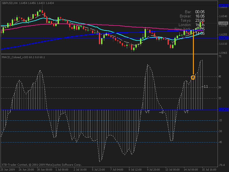 Cuando la plataforma te presenta el precio con 5 decimales, 1.42015 por ejemplo, debes ir a Tool- MetaQuotes Language Editor y buscar en Indicators el MACD Colored, le haces dobleclick para abrirlo y agregas un cero (0) a cada nivel. Debería quedar así: