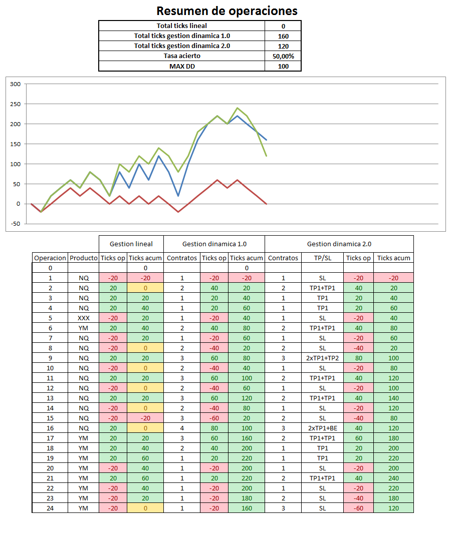 según los primeros excel parecía que usabas una secuencia de contratos de +1 si la operación es perdedora y -1 si es ganadora, aunque justamente el último trade que has puesto no cumple esa norma.