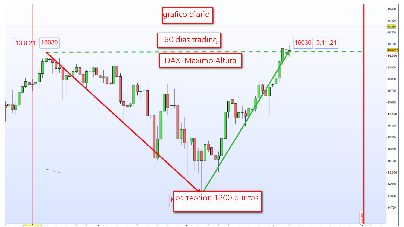 Durante el periodo desde 2015 hasta hoy 24.10.2021 el DAX ha subido unos 5600 puntos lo que significa por medio 3,3 Puntos al dia.
