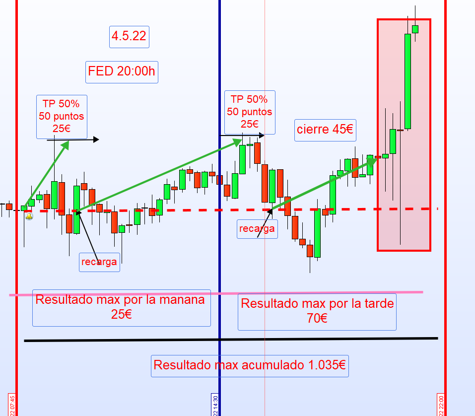 Como day trader procuramos de obtener solamente una parte del beneficio max posible durante el dia.