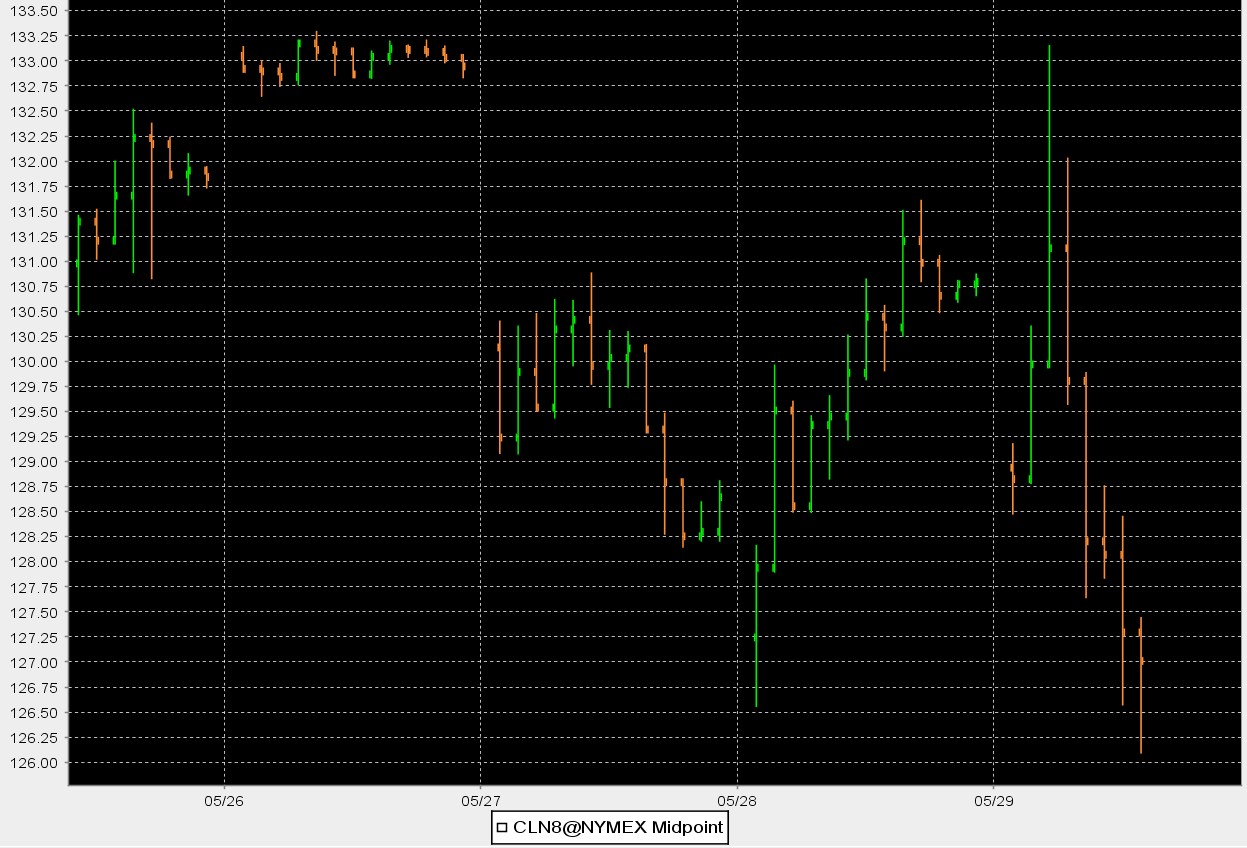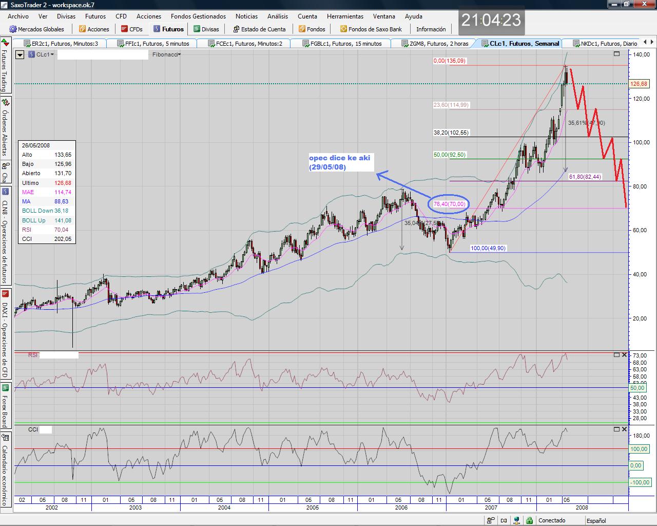 133-126 esto es de locos de remate, pero es que ahi no se queda el tema como apuntáis, la ultima gran revisión de precion y perspectivas en las empresas se hizo con la subida del crudo de 55-65 a 80-90-100 y lo jodido es que ahora desde marzo (poco mas de dos meses) ha subido otros 30 $ y esto son palabras mayores. No se si terminara en burbuja o no, pero como alguien no ponga coto a estas subidas tan brutales, las consecuencias para las economías domesticas (sobre todo) y para el consumo interno serán devastadoras.