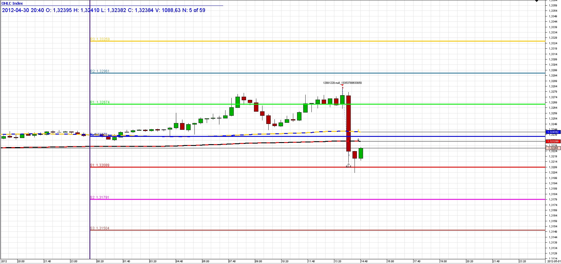 Hoy a las 01:00 GMT ha salido un dato macro importante de China el PMI manufacturero. Si bien fue inferior a lo que esperaba el consenso, el mismo se situó por encima de 50 puntos lo que indica una expansión del sector industrial, aunque mucho más lenta de las expectativas del mercado. Esta noticia ayudo al euro a testear el máximo del viernes 1.32698 confirmando el movimiento alcista que se venía gestando. Testeado el par ese nivel retrocede como es habitual para de esta manera atacar de nuevo esa cota, haciendo muy previsible esa movida de ficha a la masa de traders, imprimiendo la idea que ese máximo sería quebrado. Un detalle ha considerar ese máximo fue roto con fuerza a las 13:56 GMT antes de la salida a las 14:00 GMT del fundamental americano ISM manufacturero, que calcula la cuantía de rastros de la actividad manufacturera que se originaron en el mes anterior. Si el índice tiene un valor por debajo del 50, hay una disminución de la actividad, lo que tiende a indicar una recesión económica, en cambio un valor por encima de 50 indica un crecimiento económico.