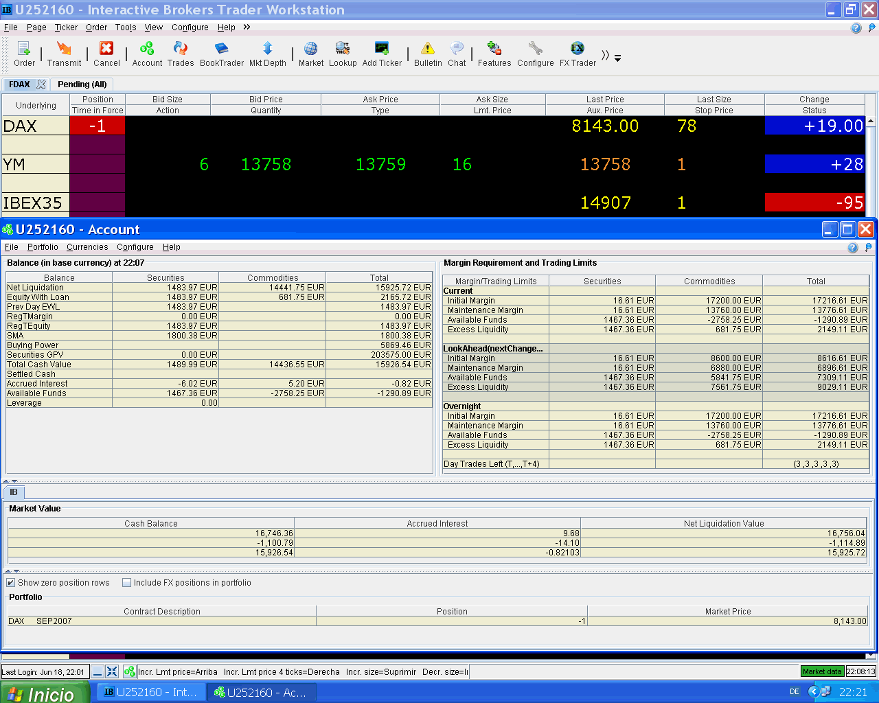 el IBEX volvió a bajar, el DAX-Futuro subió, la cagada del viernes ya me cuesta 4.430 EUR.