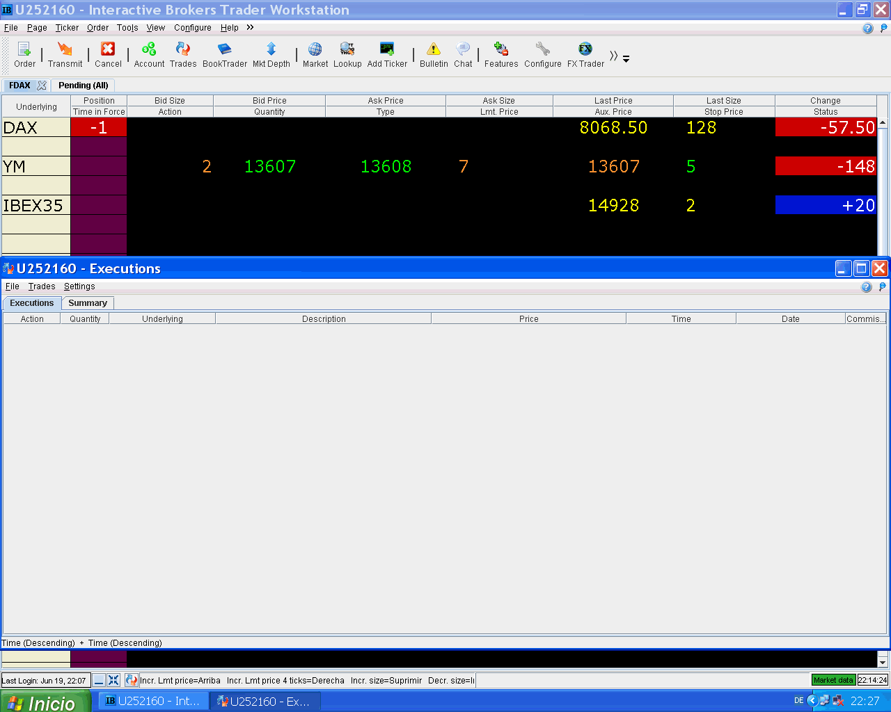 Pepe escribió:Era una operativa agresiva de ir a por pocos puntos que se basaba en mi experiencia de saber bastante bien cómo los cuidatas mueven el precio, el DAX-Futuro, y en la rapidez, tanto la mía cómo la de la plataforma que era la mejor que yo he tenido con diferencia, la X-Trader de Trading Technologies, pagaba por utilizarla sólo en una bolsa, la Eurex, 650 $ al mes.