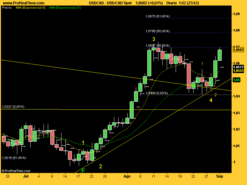 Observad cuán claro es el aspecto del dólar canadiense: estamos en la cuarta y falta un impulso. Sigo pensando que la vuelta de todo va a ser al unísono pa que luego los que ven manipulación por tos los laos se ceben bien