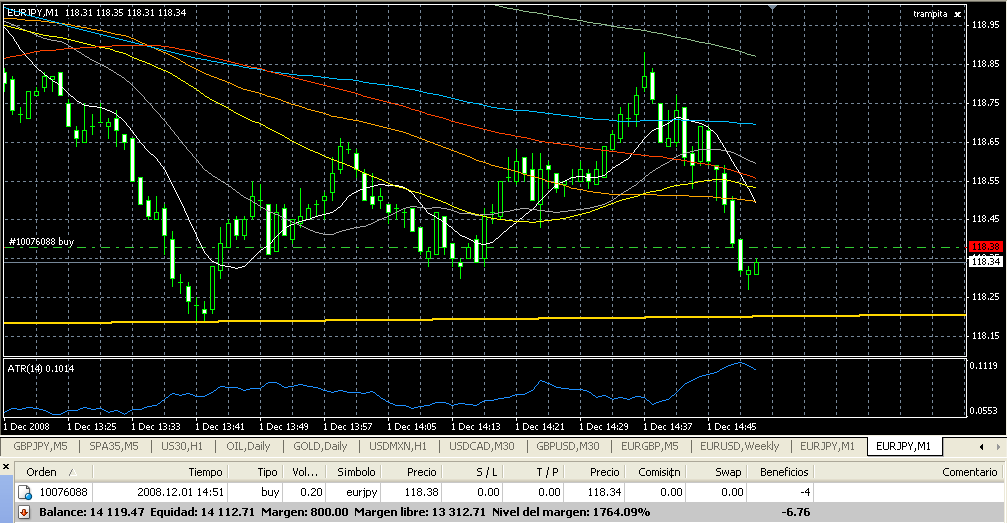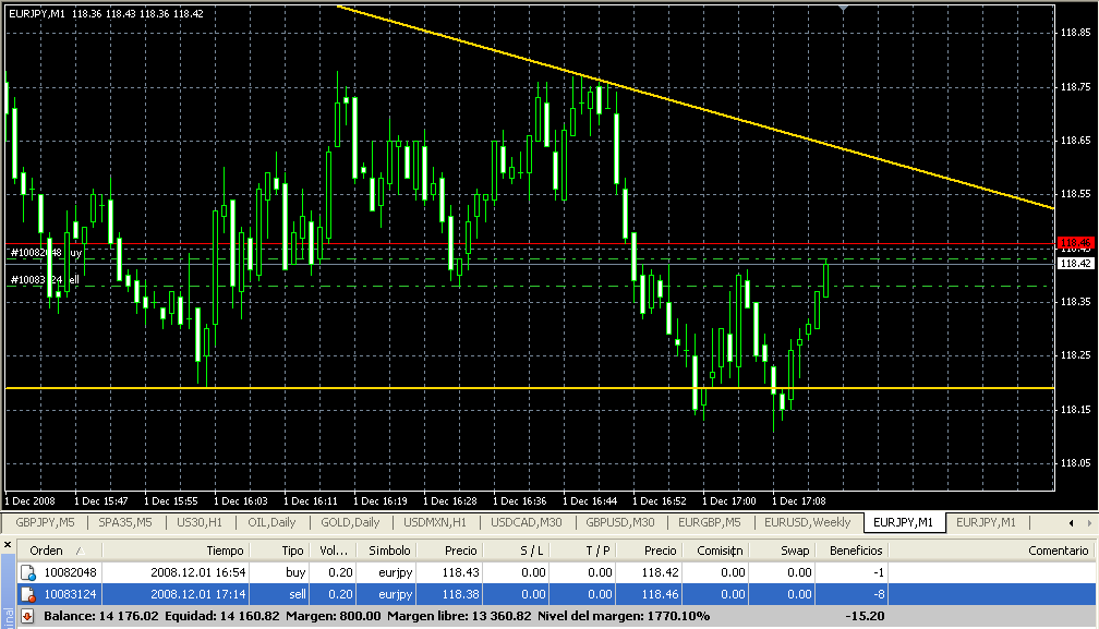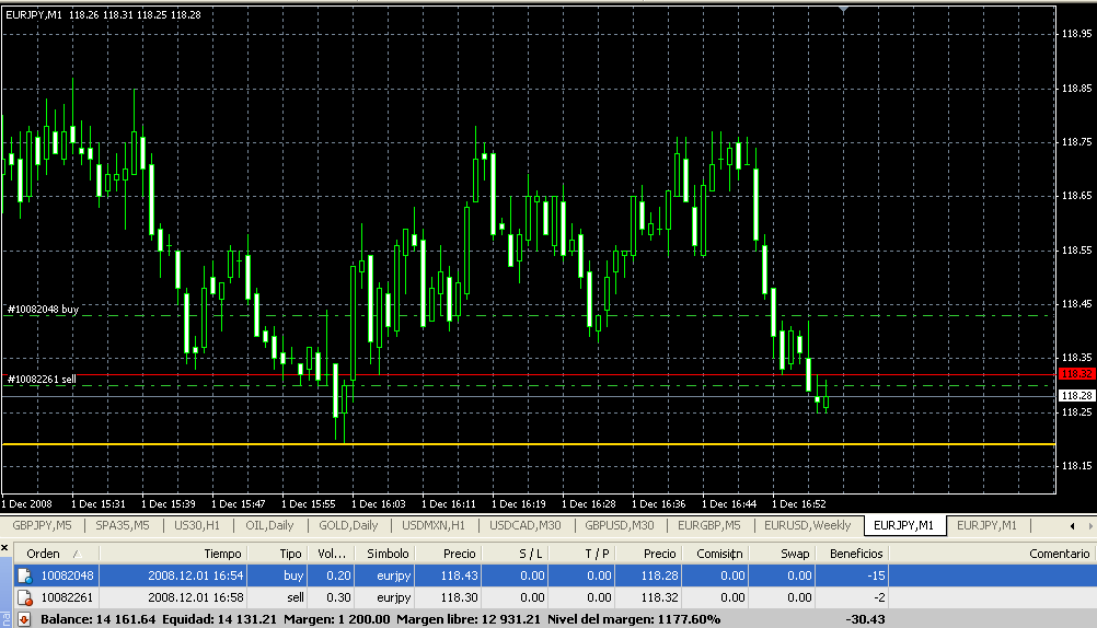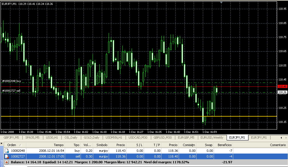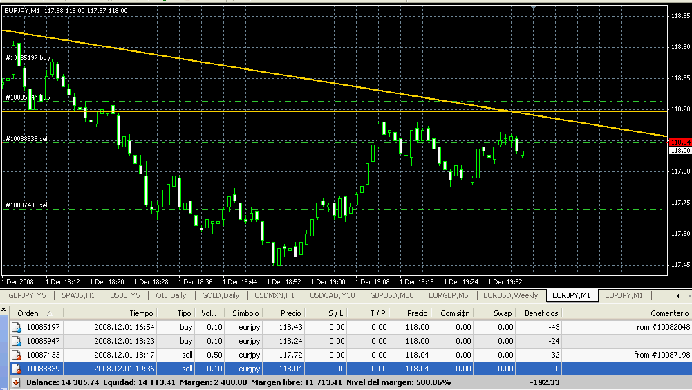 El método en sí yo no lo consideraría un anti-hedge. Símplemente intenta recuperar lo perdido cuando el precio se da la vuelta y ni eso lo consigue ya que pierde dos veces las comisiones. No digo que sea mal método, sino que no es un anti-hedge y yo no lo aplicaría así. Si el precio se ha ido 100 pipos seguro que hay puntos de entrada antes de esperar a que la cotización se de la vuelta y llegue hasta el punto donde le ha saltado el stop. ¿Por qué perder todo ese recorrido simplemente porque si, sin aplicar ningún otro análisis?