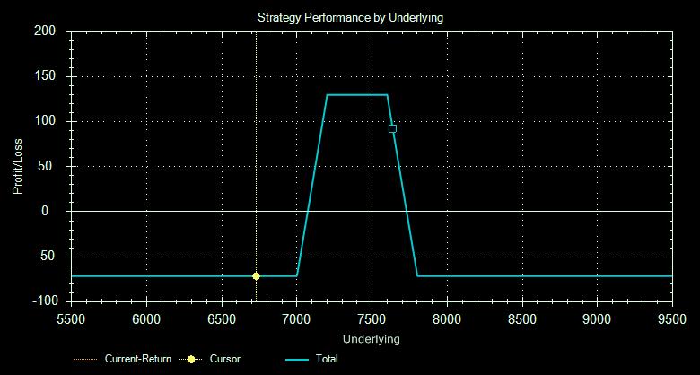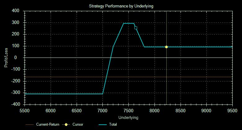 Por supuesto q coincidimos. De hecho, en la construcción de la mariposa lo q primero nos deberíamos plantear es porque situamos los umbrales en 7400 y 7800 y el role q propuse es lo más obvio. Pero si al hacer nuestra estrategia elegimos 7400 pq lo considerábamos un soporte y apostábamos por una lateralidad del mercado, tal vez fuera factible adoptar una postura más arriesgada en la que además de cerrar la posición vendiéramos otra put 7400 y compráramos una put 7000 mas para limitar pérdidas. De este modo, aumentaríamos las pérdidas potenciales iniciales, pero habríamos "arreglado" la pata superior y además obtendríamos unos beneficios superiores si se da el movimiento lateral previsto.