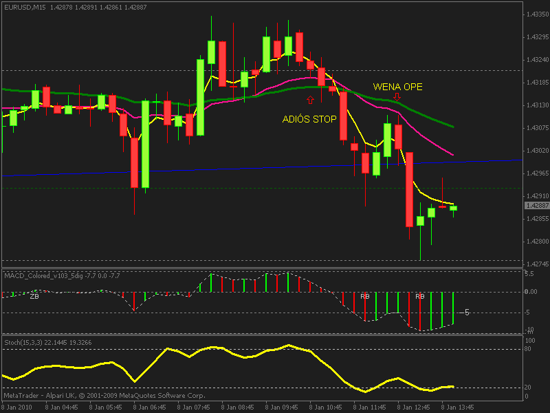 Pos el sistema ese de Lowry que ponía por ahí. De hoy,sin ir más lejos: una ope buena y una mala... Compramos o vendemos en el pullback a la media rosa. Pero si nos fijamos, bien jugao, deberíamos haber perdido poco en la mala y ganar algo más en la wena, con lo que al final ganamos...u sea, no cómo entrar, sino más bien, cómo jugar es la clave.