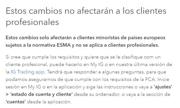 Otro al que le gustaría saber esos requisitos creando ese vacío legal.WallStreet escribió: 04 Abr 2018 17:12X-Trader escribió: 04 Abr 2018 16:53Confirmo la info que señala jda, aquí tenéis un pantallazo de IG explicando cómo hacerlo:jda escribió: 29 Mar 2018 10:23Hola a todos: