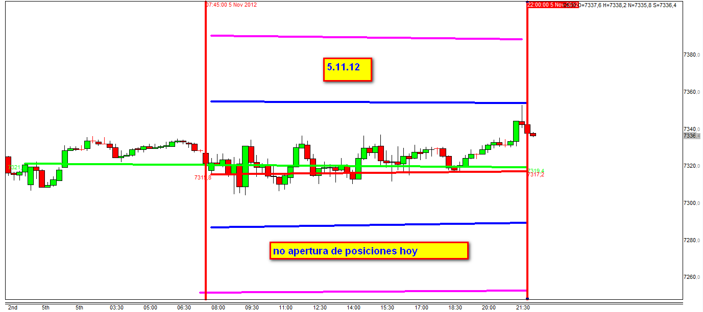 Como dije antes el cierre del Fdax en subasta en 7360 cuando la ultima vela cerro 7320 es lo que nos tiene en rojo cuando deberiamos estar en positivo y a la paz que el Fdow, jejej pura manipulacion de los mercados, juassss.