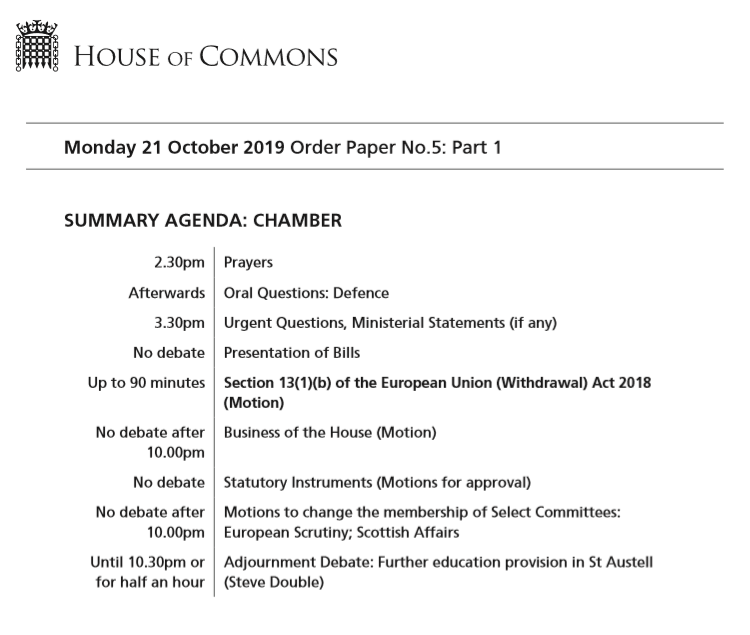 Ya tenemos el orden del día para hoy en la Cámara de los Comunes, todas las horas son BST (tenéis que sumar una hora para convertirlo a hora española):