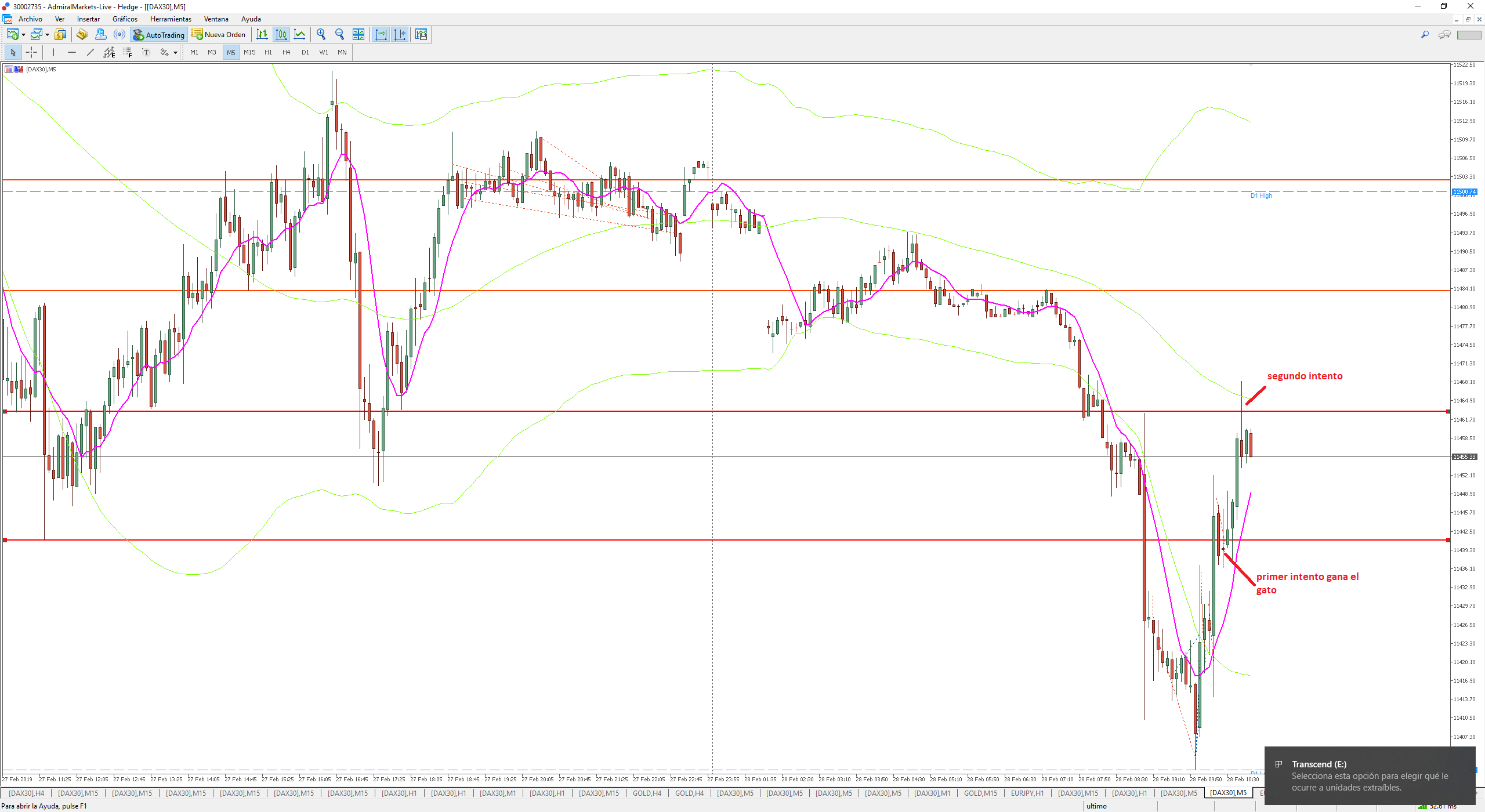 Ese rango esta en zona de resistencia con varios intentos fallidos y esta mañana bajan a buscar apoyo a niveles mas bajos, lo hacen rompiendo el nivel del pivote del ultimo retroceso y el rango de bollinger
