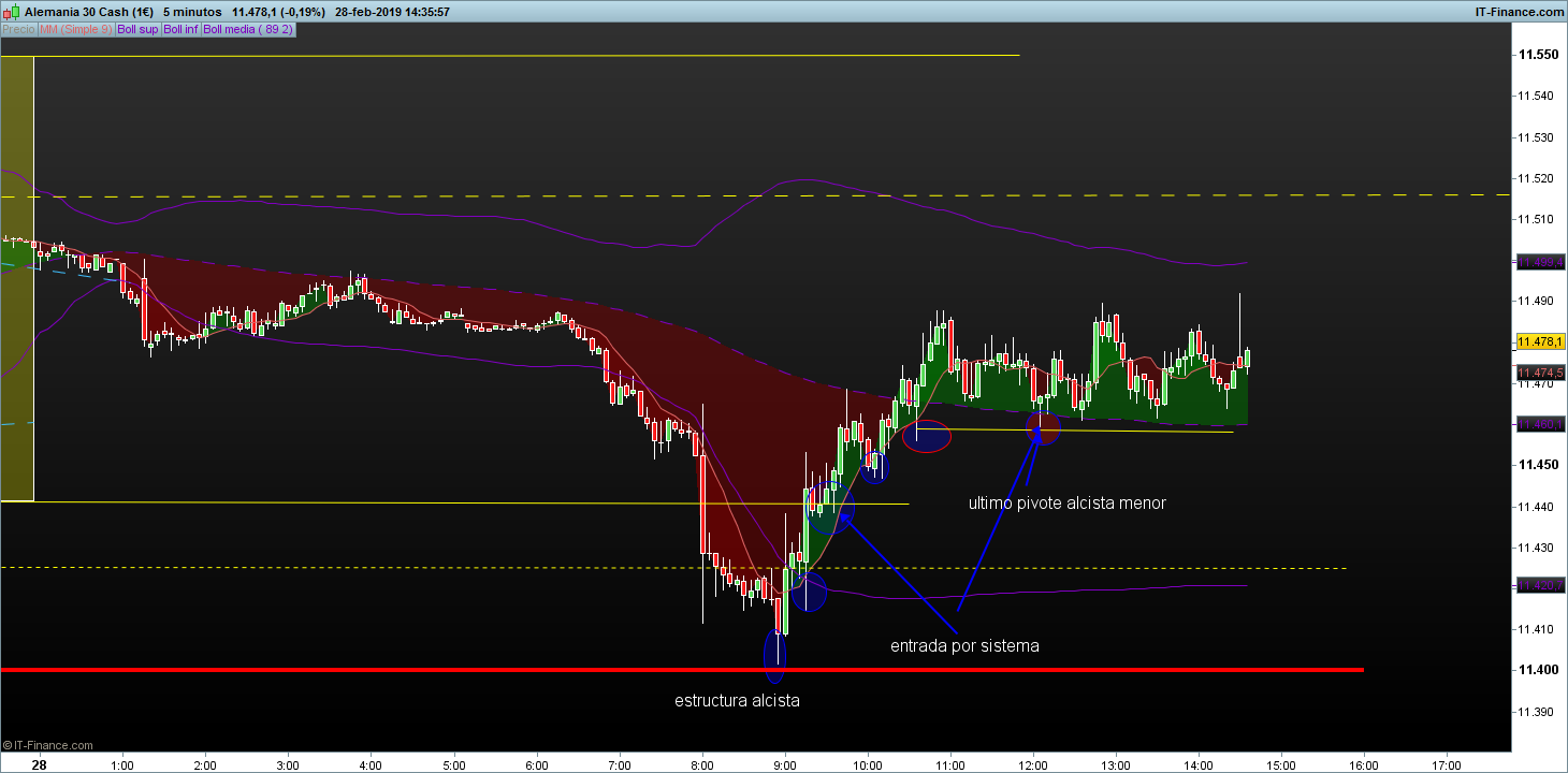 Acto seguido a las 8,30 marcan el pullbakc tras la rotura, ese patrón es muy fiable siempre que se den esas condiciones aunque sea contratendencia siempre que el mínimo de sesión anterior este distanciado lo suficiente para entrar en la operación porque si hay un soporte cercano no se entra que es lo que ocurría arriba ( resistencia en estructura cercana que no rompió y se giro)