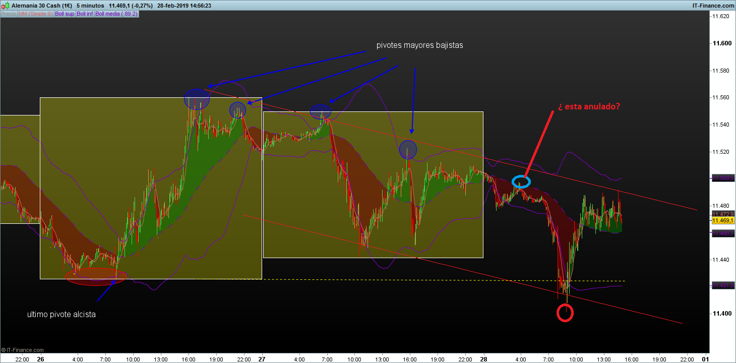 Las roturas de vola, las veremos mas adelante en detalle para ver que condiciones deben darse para entrar, pero si eliminamos las bandas, igualmente es una pauta a cortos para el rango de sesion porque hay una resistencia arriba con tres intentos fallidos y un nivel a romper abajo y el ultimo pivote alcista esta muy lejos