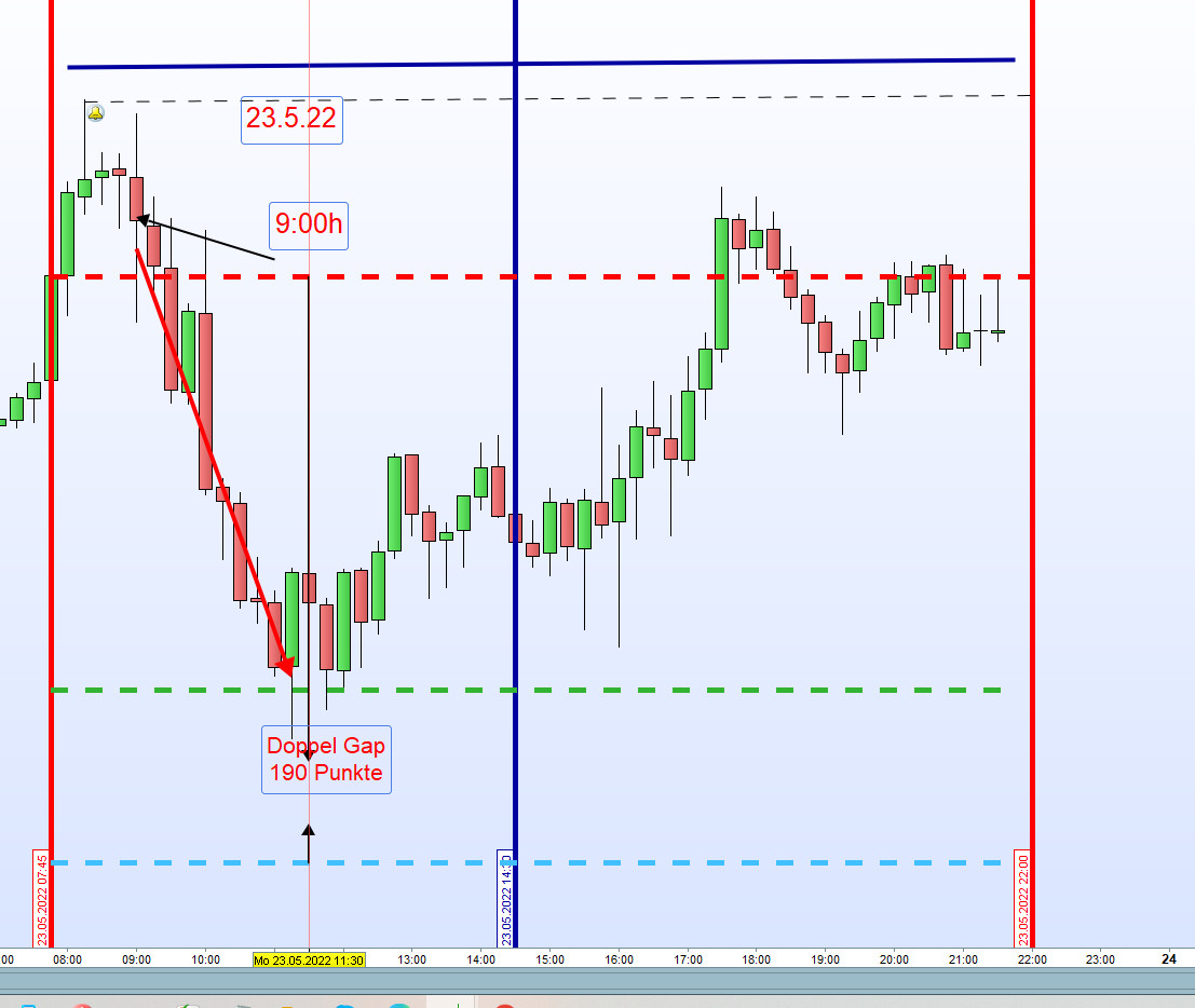 Ayer el corto tanto para el DOW y FDAX era la zona ma alta del dia y se veia que el preciso no podia alacanzar el cierre del dia anterior. Sentido comun que tambien es parte de la estrategia para avanzados.