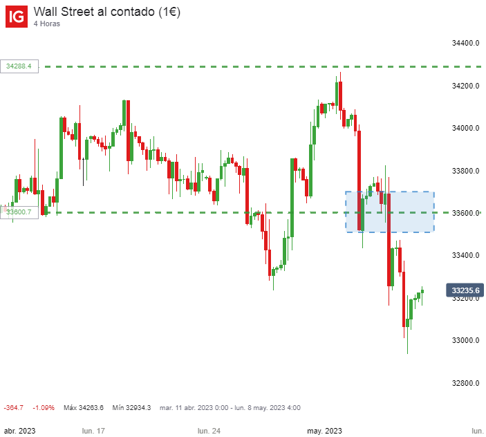 El Dow ha hecho un test y ha sobrepasado mi zona de control pero aún esta por ver si vuelve a bajar el 350 se volvera a ir abajo