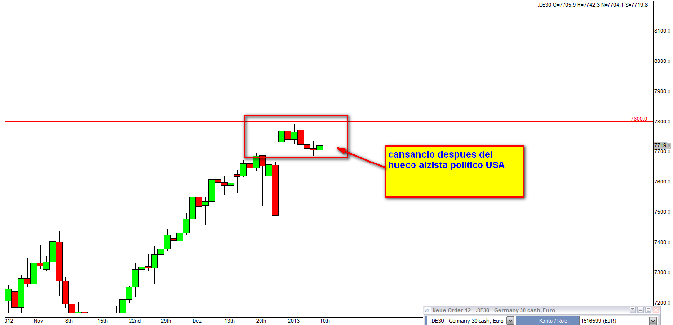Despues de un reverse por la tarde el DOW manda y el FDAX sigue la bajada a raja tabla