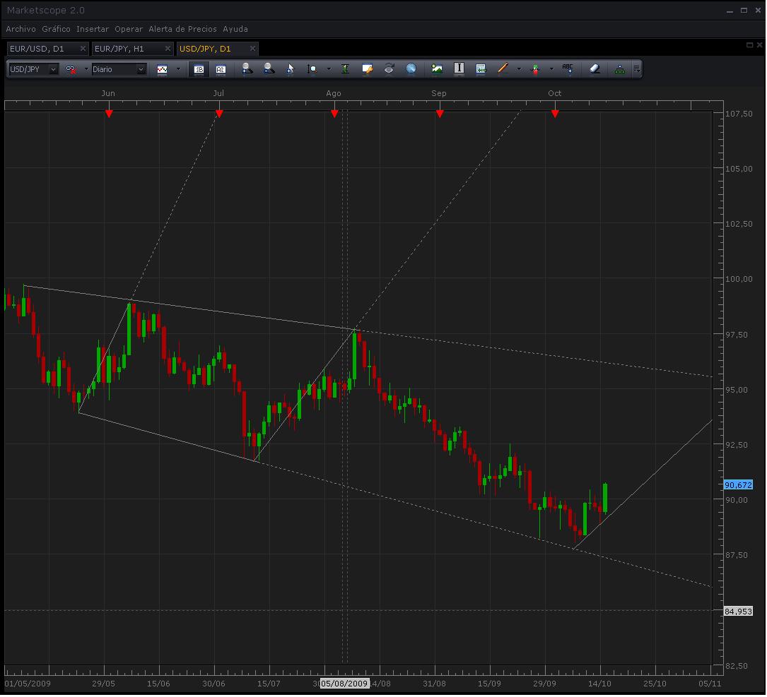 Como bien dices el precio se puede ir a 95-96, parte alta del canal, pero la tendencia es bajista y me parece un poco arriesgado jugarse un stop de 200 pips. En este aspecto creo que se pueden hacer entradas de 30-40 pips hasta cazar la entrada buena de 200-300 pips. Más que nada porque una pérdida de 200 pips te puede afectar psicológicamente, por lo menos en mi caso.