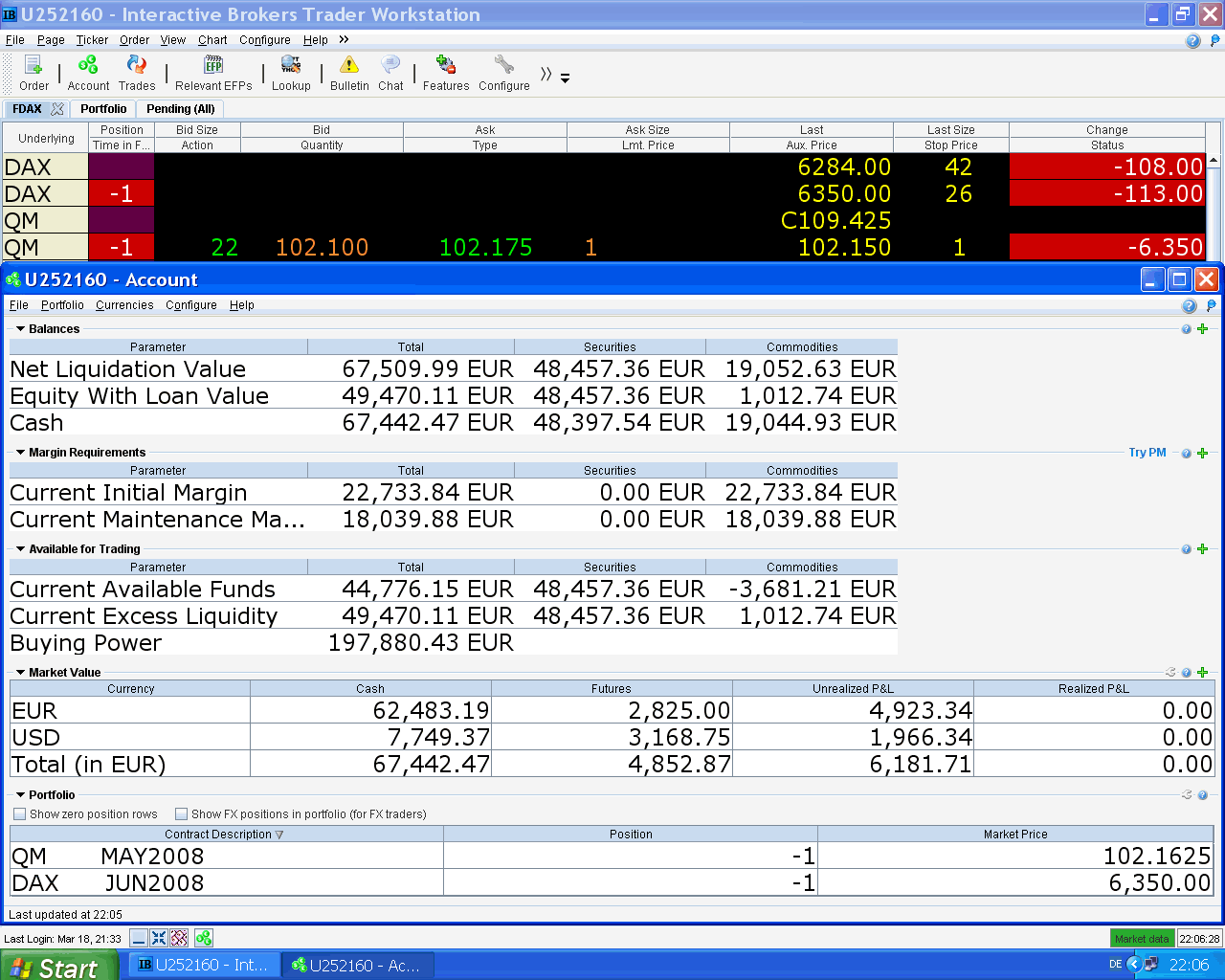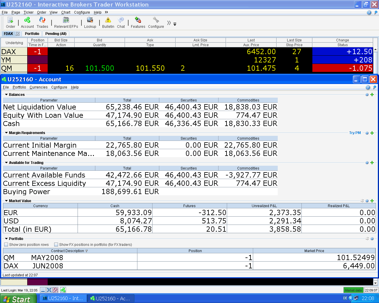 he cambiado los vencimientos de los dos cortos, en el DAX tengo ahora el de Junio y en el petróleo el de mayo. Tengo cortos para rato, los tipos de interés de USA están ahora en el 2,25 %, hasta que lleguen al 0 % ...