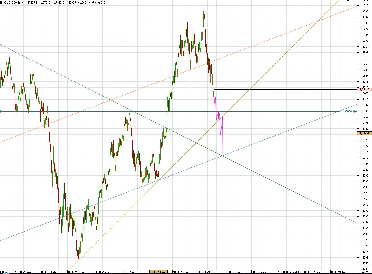 Primero volver a decir que Fer137 tenía razón sobre los triángulos expansivos en los mercados de divisas ya que al haber simetría lo que es bajista en eurodólar es alcista en dólareuro. Y como decía Spirit autores como Neely no se debian referir al mercado de divisas sinó al de acciones.