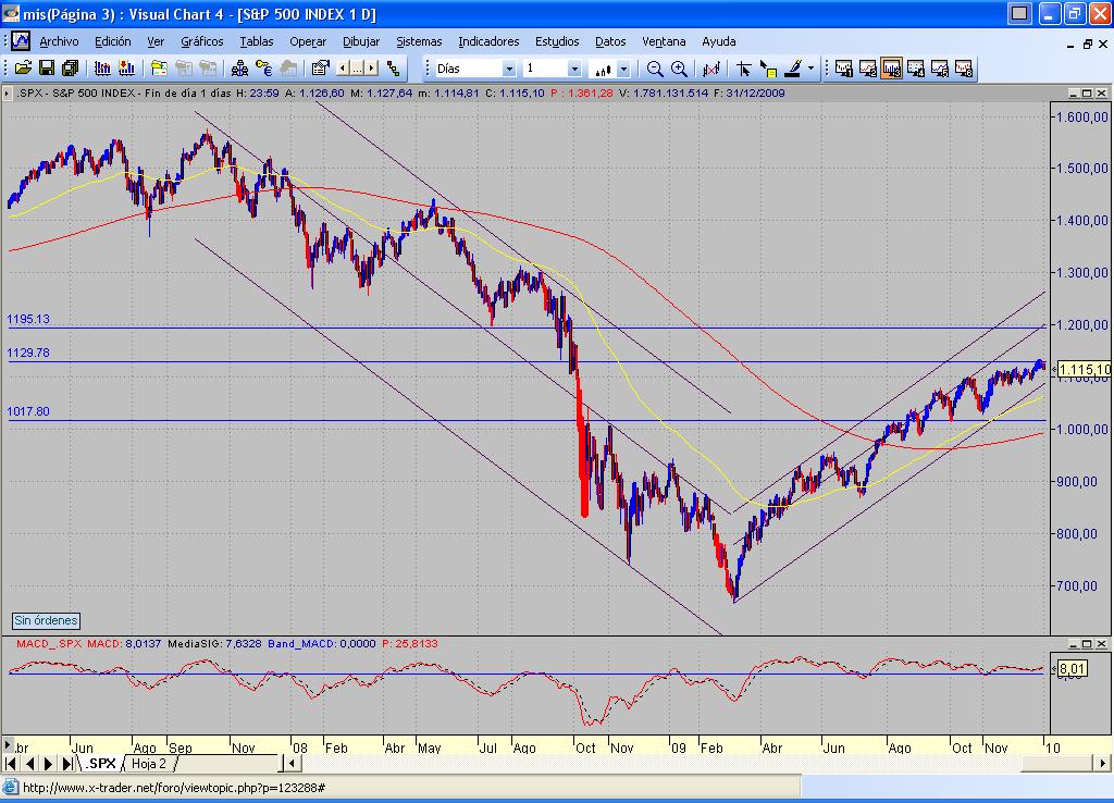 En fin que difícil saber , pero lo que esta claro que no hemos de intentar adivinar puntos, sino seguir direcciones, en este caso si lo que se kiere saber es la tendencia actual, sigue siendo alcista, aunque posiblemente estemos en un momento correctivo por el factor psicologico de las palabras de obama a los bancos...(pero creeis que los bancos no compraran sociedades de trading que actuen por ellos???
