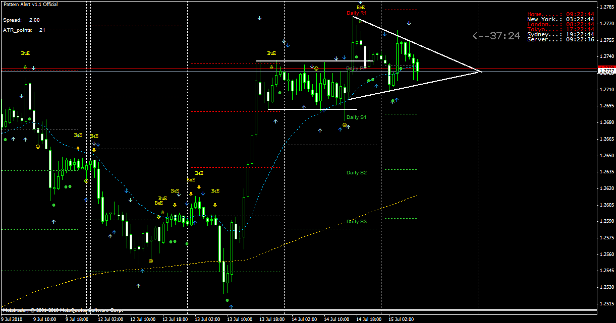 Adjunto una bandera que hay ahora mismo en eurusd en 1 hora. Lo normal es que haya un rompimiento al alza ¿no? ¿Que haríais en este caso de problable rompimiento al alza? ¿pondríais un stop de compra o esperaríais al rompimiento? en caso de poner el stop, ¿donde para evitar falsos brekouts?