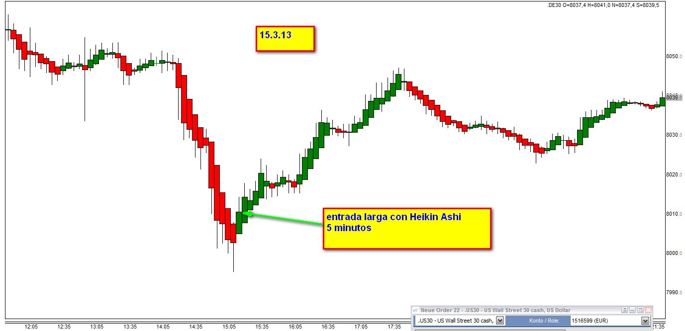largo con Heikin Ashi 5 minutos. En caso de Miguel este estaba con perdidas con largos a la apertura y no solamente