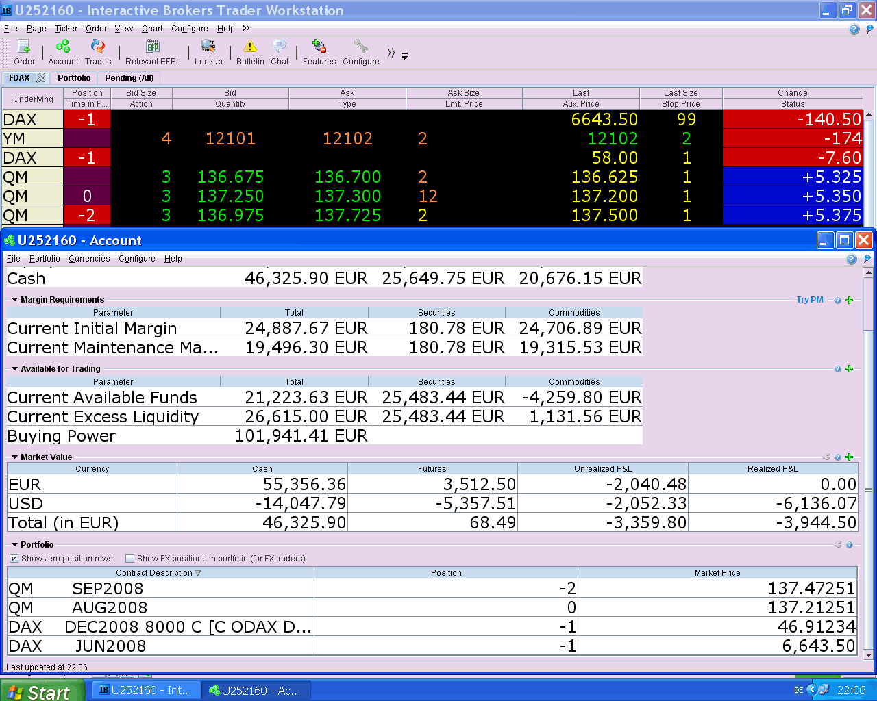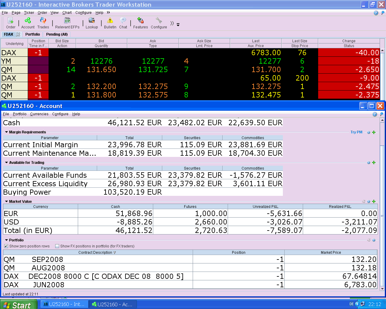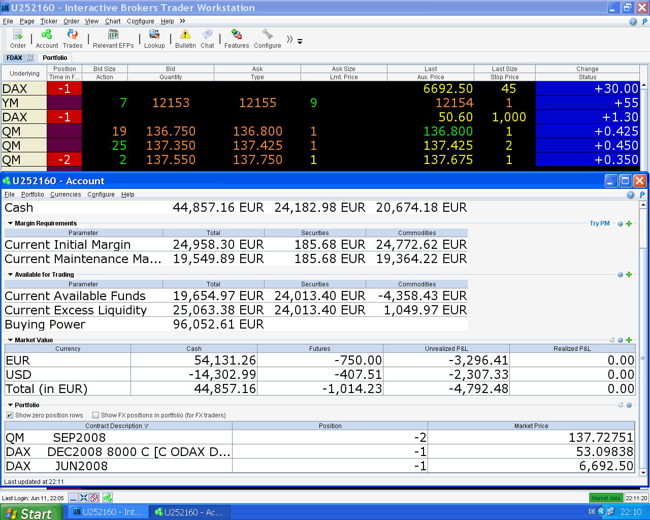 el lado positivo de la subida del petróleo es que mientras el precio esté alto no tengo que preocuparme por el DAX. El contrato de agosto que me quedaba lo cambié hace un rato también por uno de septiembre, ahora los dos que tengo son de ese vencimiento.