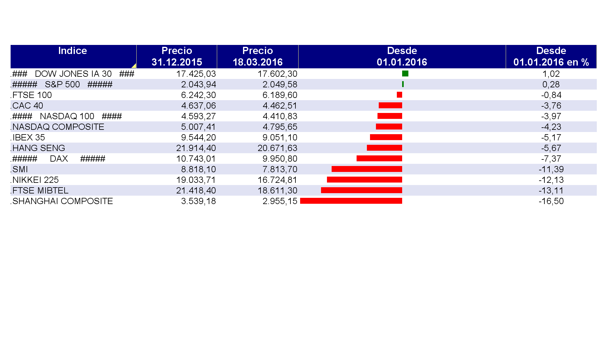 Evolución de los principales índices internacionales en 2016: