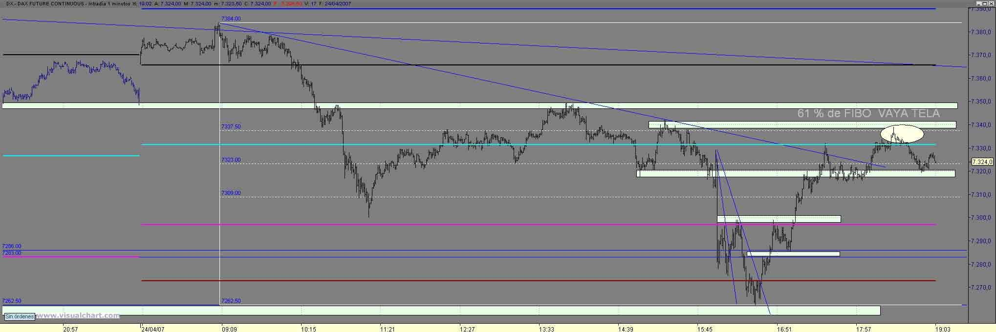 El problema del perezoso, es q cuando como hoy el Ibex, o en otras ocasiones el FT100 o el CAC40 va a la contra no sigue ni al dax ni a nadie, y eso la verdad es q desespera, yo hace tiempo q deje de trabajarlo por esa razón, si bien fue con el primer futuro q empecé a trabajar  fuera del mercado español, cuando lo q nos enviaban era el francés.