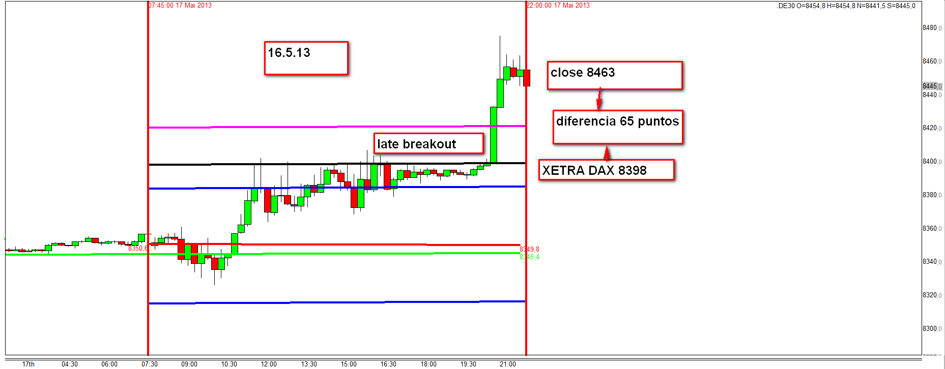 Resulta que existe un disconnect de 65 puntos entre el cierre del XETRA-DAX a las 17:30 y el FDAX a las 22h.