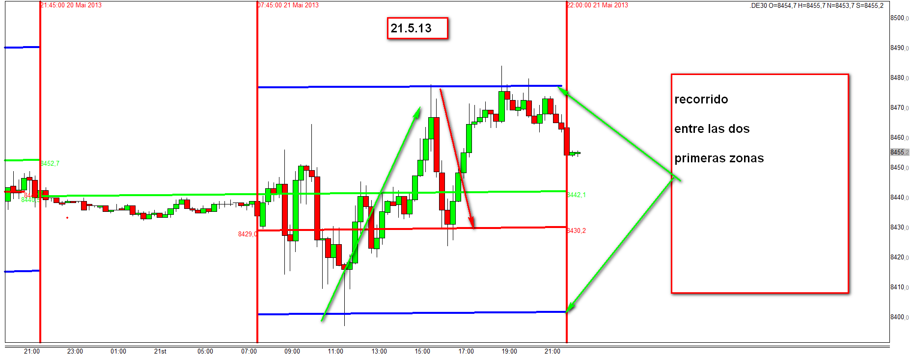 2. Avanzado la tarde y el precio consolidando lateralmente en la primera o segunda zona ( time consolidation)