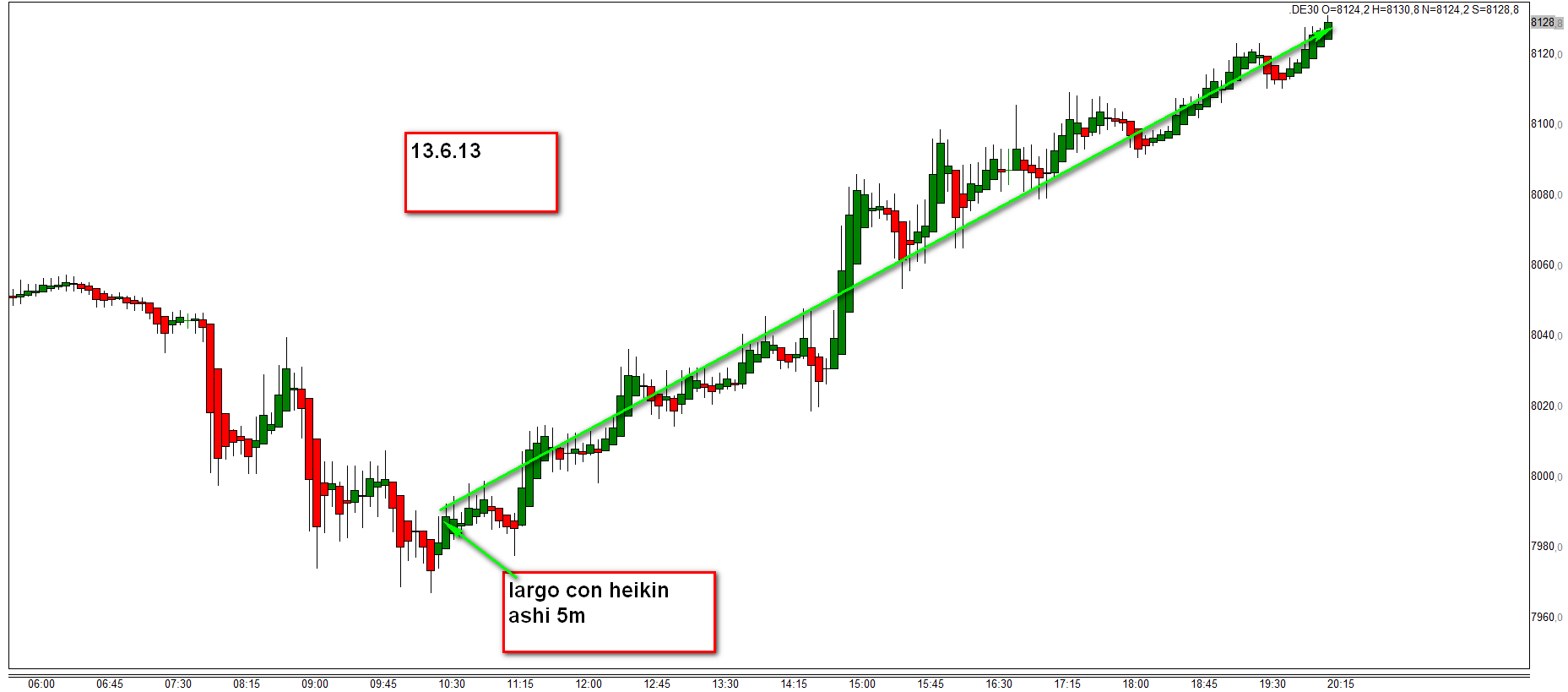 cuidado con la apertura. Doble hueco , jueves ..... Esto no significa que el precio no pueda bajar mas. Entrada largo solamente con heikin ashi 5 minutos de DE30 y US30.