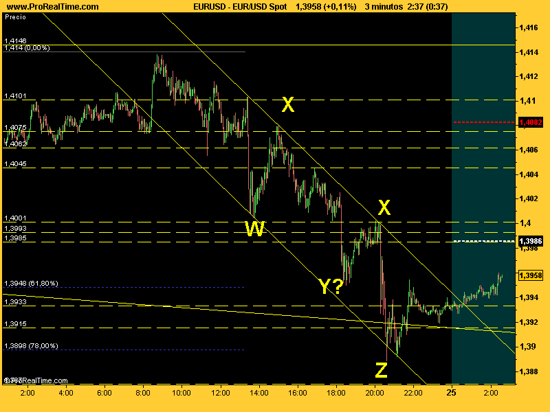 Pero para que te hagas una idea, en las 4 entradas que he realizado hoy no he utilizado más que lineas de tendencia y observación de velas. La última sobretodo la tienes documentada al detalle en vivo y en directo y además iba comentando "mi sentimiento del mercado" en cada momento. Pues, bien, eso tiene mucho que ver con la forma en como yo veo que se forman las velas y la velocidad con la que lo hacen.