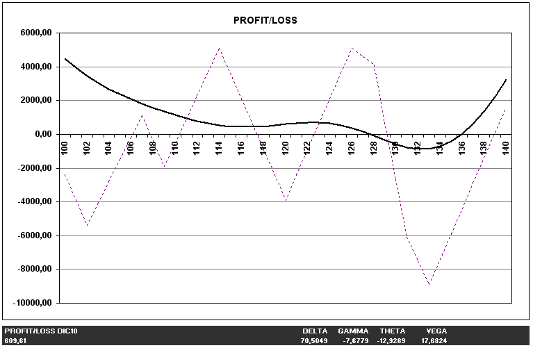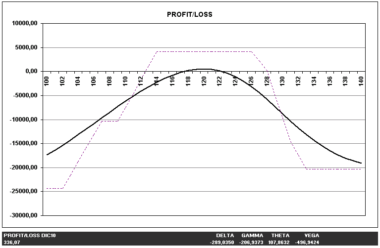 Con esto me quedo vendido de un paquete de Iron Condors a diciembre con strikes 102/107/126/131.