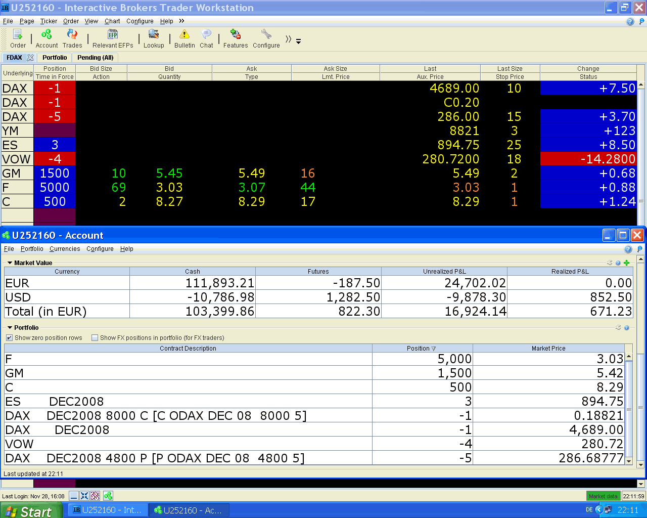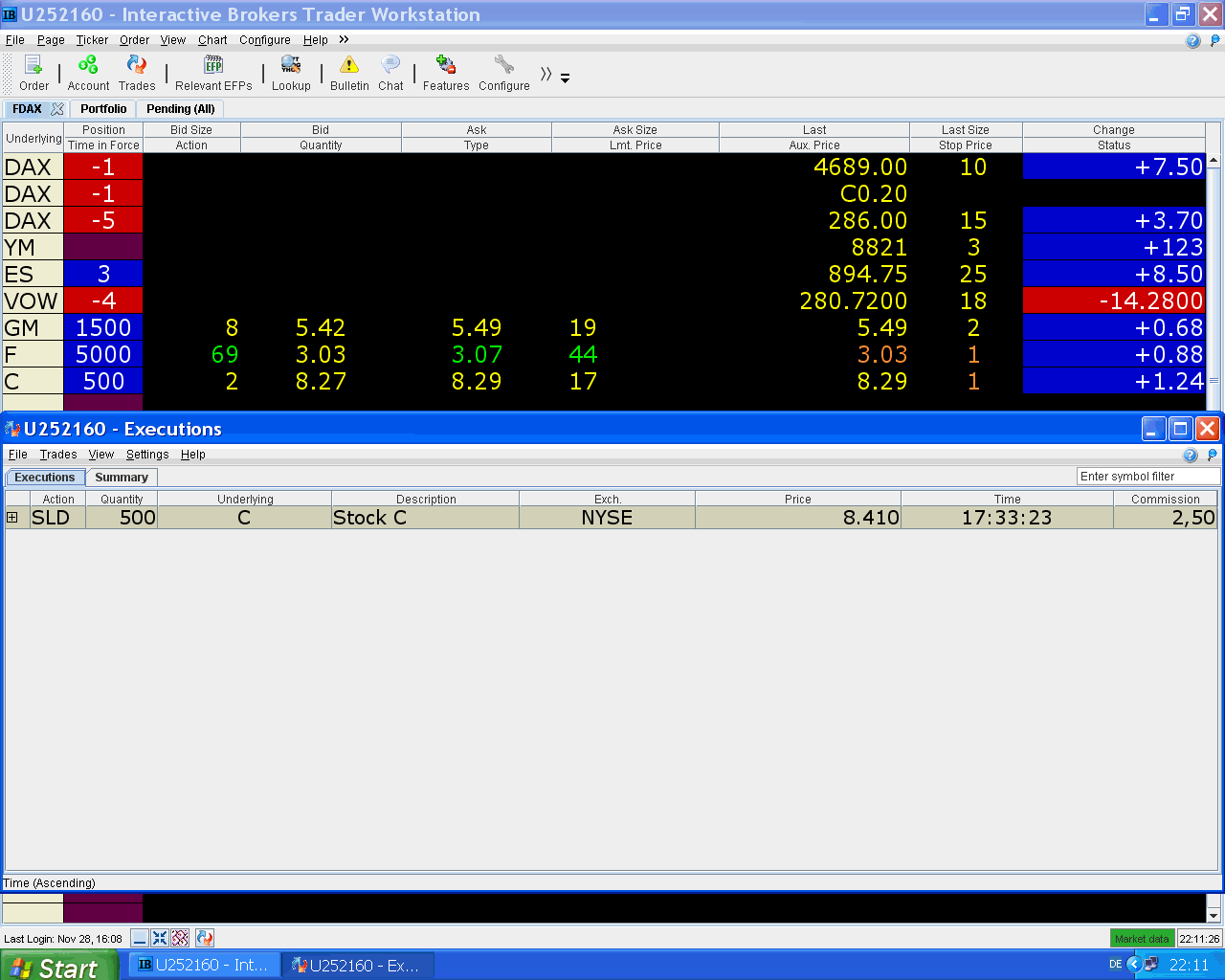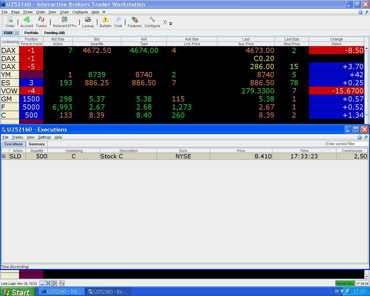 hoy aproveché la fuerte caída de Volkswagen para cerrar parte de la posición corta, sigo pensando que aún tiene que bajar más pero por si acaso, ahora va a ser difícil que pierda con esa operación.