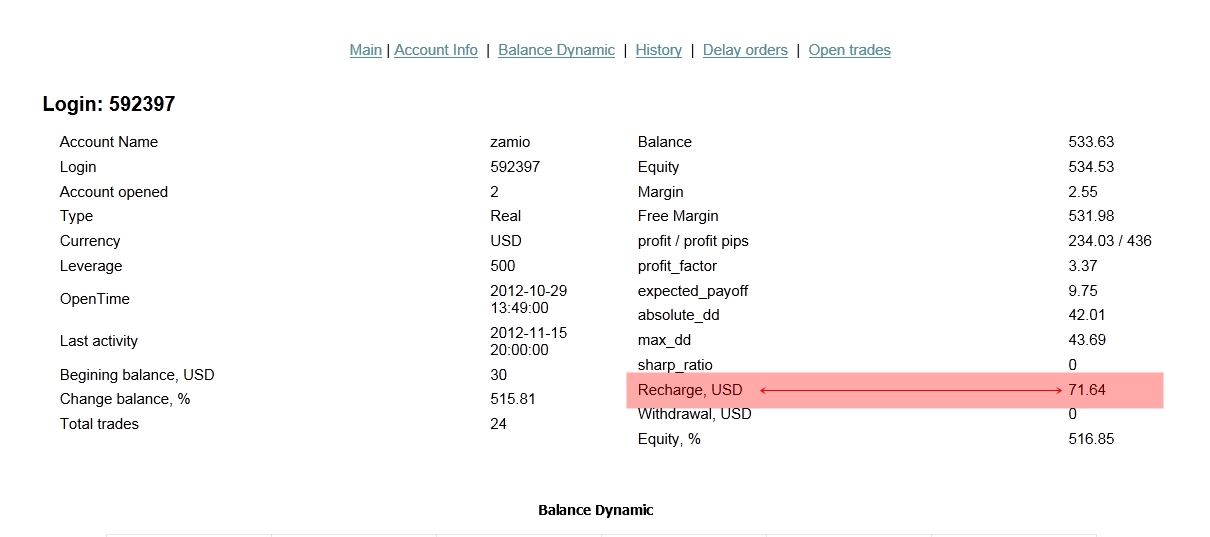 Y bueno, para terminar, yo pensaba que si, que había quedado claro que yo había depositado, pero por si te queda alguna duda que solo he depositado para optar al premio, miras bien las fechas de deposito y mi aumento en el balance por trades no ha llegado ni a 10€, puesto que no he pasado de 0.01 y el trade que mejor me ha salido fue el de ayer, 110 pips en el euro +-, mi balance Neto, con los 100$ del principio incluidos, es desde la semana pasada de unos 430$ aproximadamente.