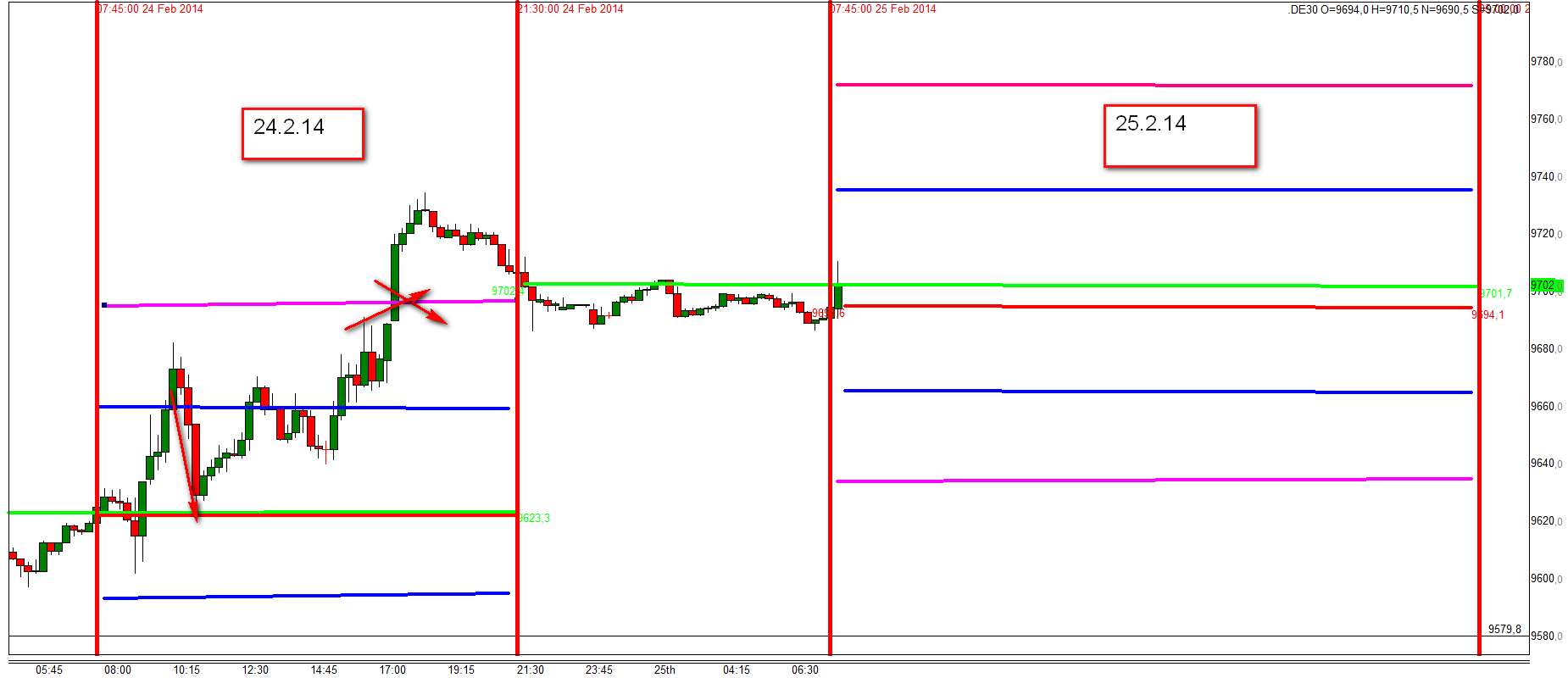 Según las normas de la FDAX-Trading-Strategie original, teniendo en cuenta la relación con el US30 hoy el escenario era el siguiente: