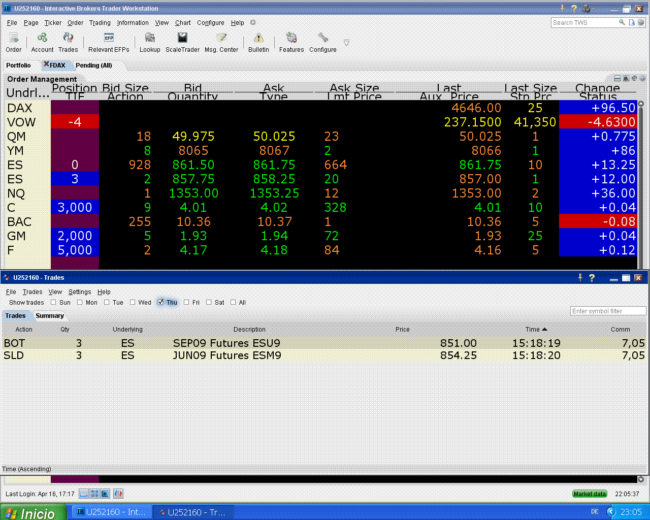Dicho esto, en tu caso esto es una pijada porque operas poco, pero de rolo en rolo... mejor que lo sepas y utilices el spreadtrader de IB, que para eso lo tienes, y te posiciones a centro de horquilla para mirar de ejecutar el rolo con el menor coste posible.