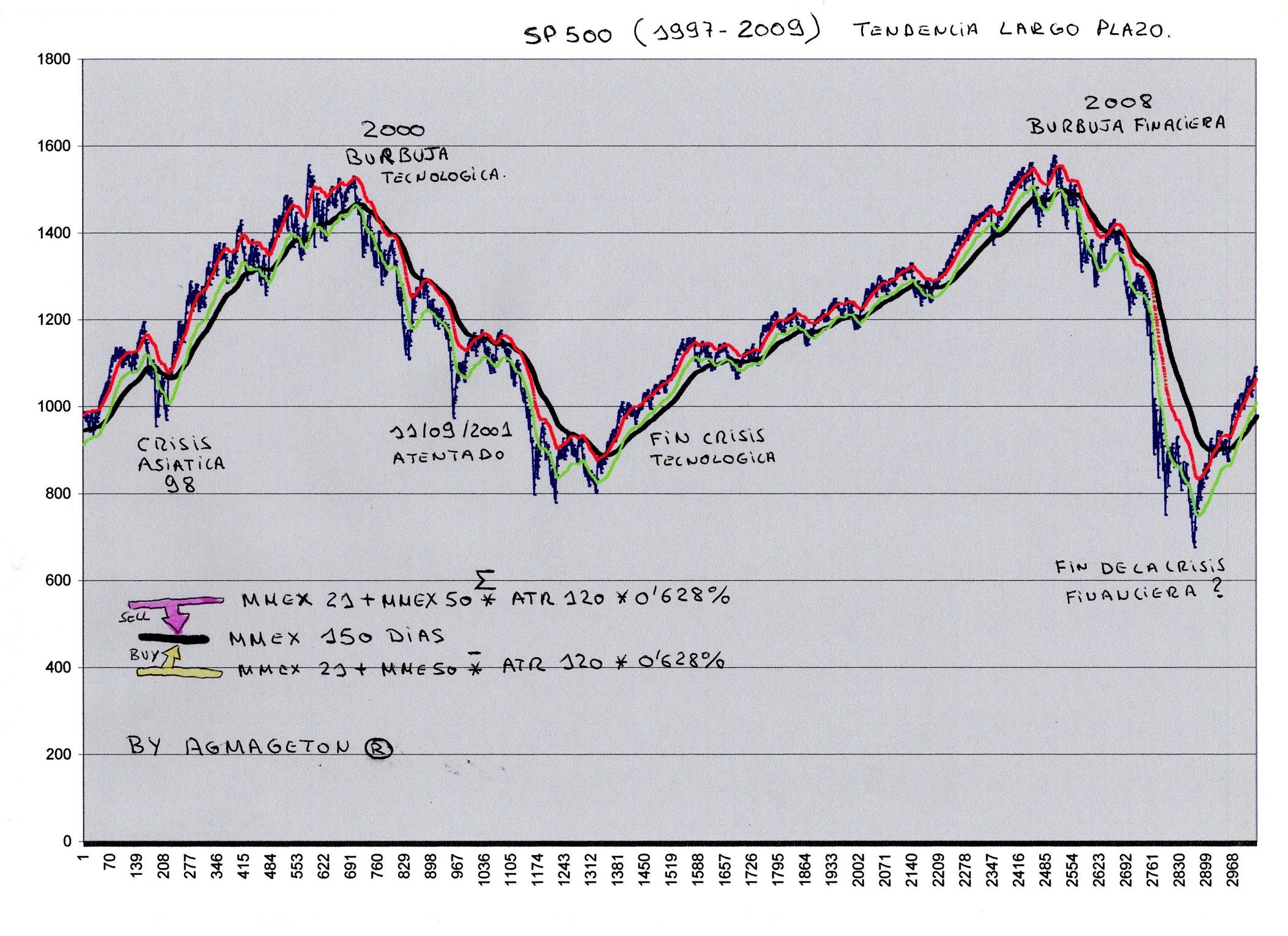 Sobre estas consideraciones descartamos el primer modelo de tendencia 100/21, por tener una fiabilidad menor a lo exigible para determinar la tendencia del movimientos de los precios a largo plazo.